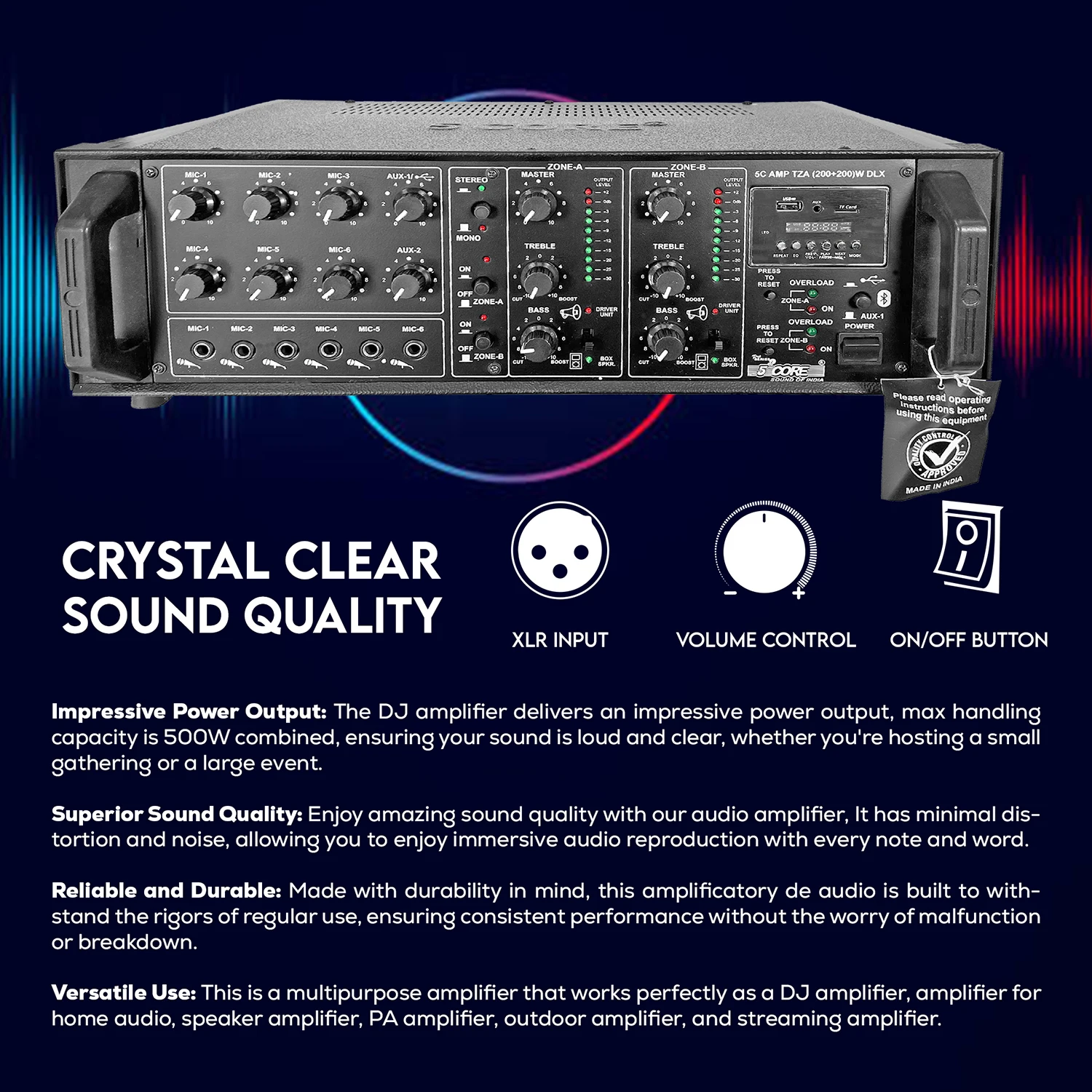 This is a multipurpose amplifier that works perfectly as a DJ amplifier, amplifier for home audio, speaker amplifier, PA amplifier, outdoor amplifier, and streaming amplifier. |