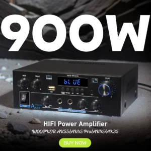 ● Delivers Max Power 450W+450W (Totally 900W) to be used for multi-speaker 4-16 ohms impedance. It boasts roaring bass, crisp highs and an outstanding richness that most amps can only hint at.